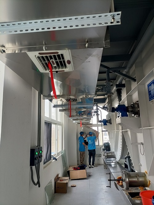 我公司(si)采用的車間(jian)崗位(wei)降溫方法(fa)就是把(ba)冷(leng)風直接吹到(dao)工(gong)人身上,車間(jian)里(li)面的布局類似于中央(yang)空調(diao),車間(jian)里(li)面有主管(guan)道有分管(guan)道,每個工(gong)位(wei)都(dou)是一(yi)個分支(zhi),都(dou)有一(yi)個排風口。